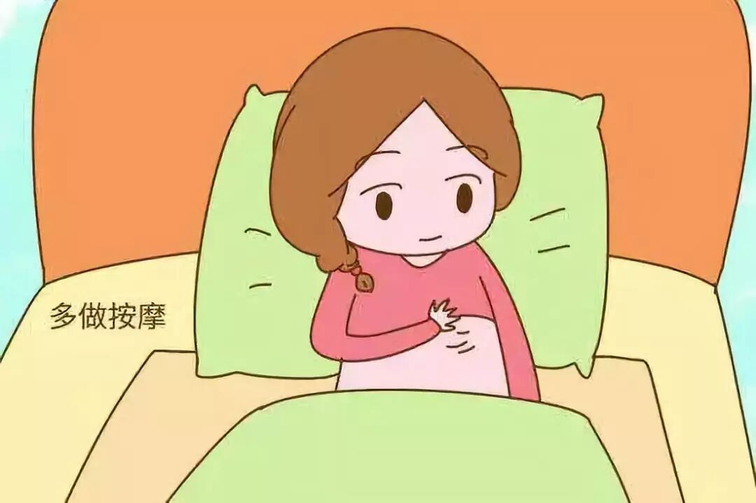 将手掌放在肚脐周围,以顺时针环形按摩,按摩时用力按压(以可以忍受的疼痛为准)。按摩能刺激子宫收缩,加速子宫恢复。