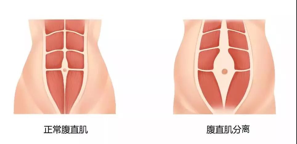 在孕晚期,增大的子宫会将腹肌拉长,使两条腹直肌从腹白线的位置分开,这种现象被称为腹直肌分离。生完宝宝后,部分产妇松弛的腹部肌肉并不能马上恢复到原有的形态和位置,多余的赘肉在腹部形成突起,非常影响美观。