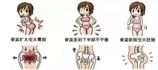 分娩后女性的骨盆会松弛,会给身体带来明显的变化。骨盆下口变宽,这会让臀部扁平;髋关节向内侧歪斜,臀部变宽;骨盆变得松垮,腰部弯曲严重;膝盖以下的腿部扭曲,变成0型腿;变形的骨盆让腹肌变得松垮,骨骼变得疏松。