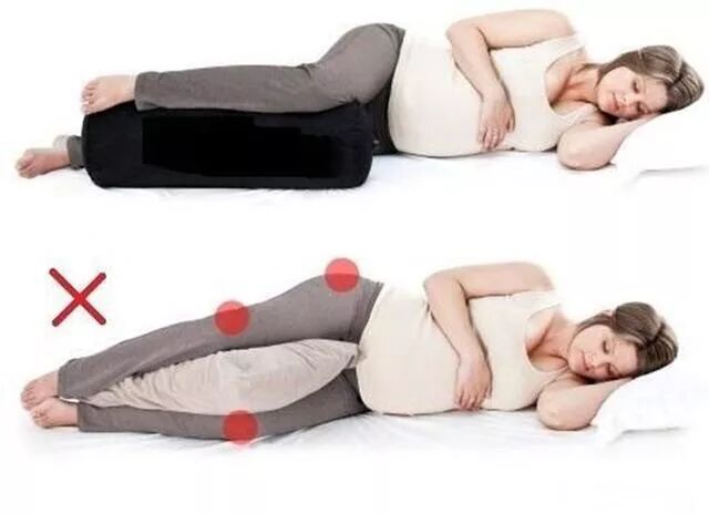孕妇出现耻骨疼痛,应减少活动量。比如不能干重活,不要提重物,尽量多补充一些蛋白质和钙,并有时间多注意休息一下。在睡眠时尽可能在两腿之间夹块较硬的垫子,以减少耻骨分离带来的不适感。见下图: