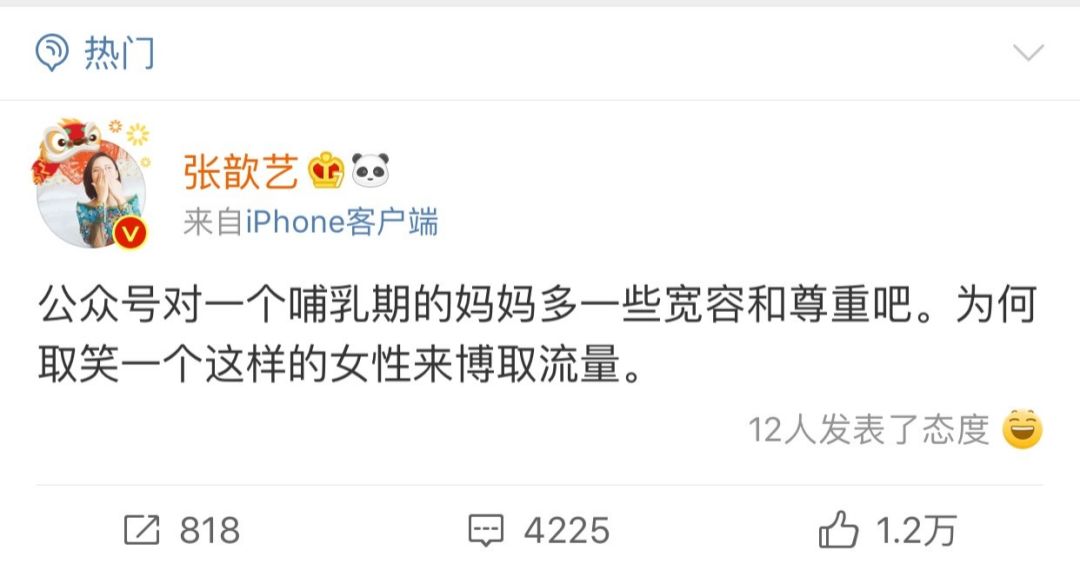 张歆艺生娃之后,频频上热搜,主题无一例外:为哺乳期女性发声。
