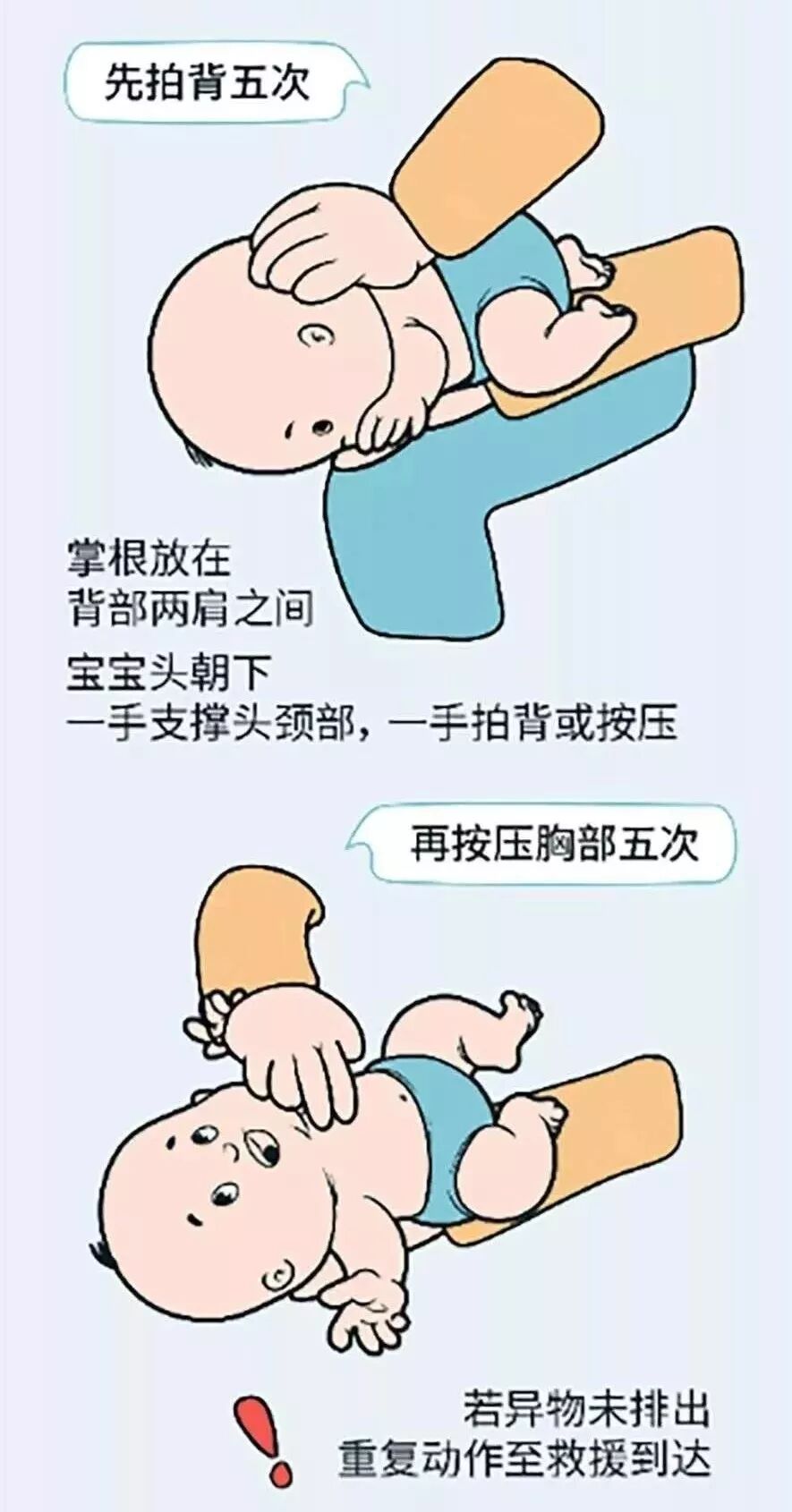注意:不管是婴儿还是幼儿还是成人,如果对方失去意识或暂停呼吸就要停止施救动作,给予心脏复苏,紧急情况下及时医。