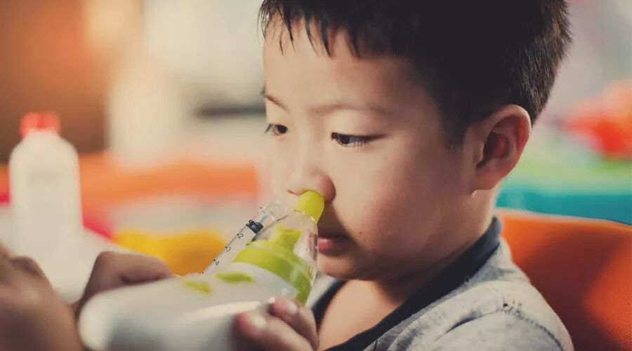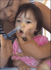 这个年龄阶段的孩子可以选择用注射器式或者挤压式的洗鼻器洗鼻。注意,孩子如果之前没有接触过洗鼻的话,可能不乐意让你给他洗,这就要注意方法策略啦。