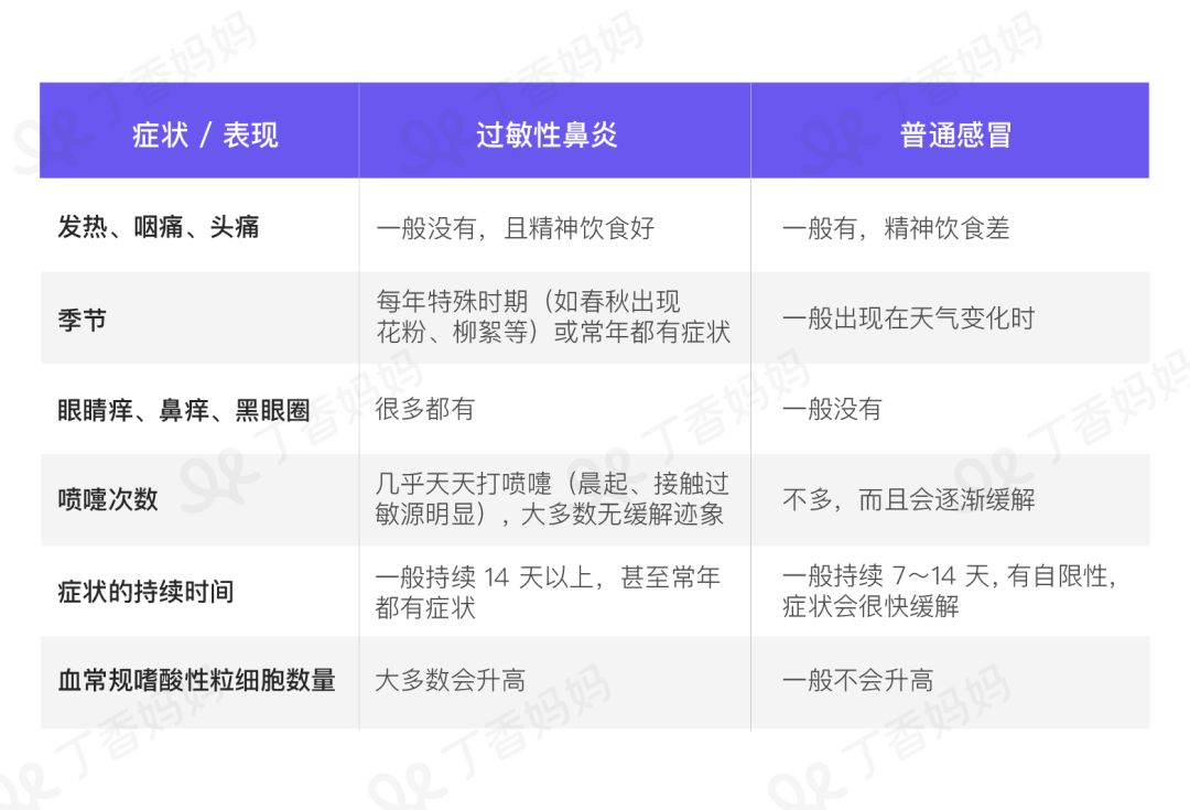 同样都是流鼻涕、打喷嚏,看起来过敏性鼻炎确实和普通感冒有相似之处,也因此很多家长产生了混淆。