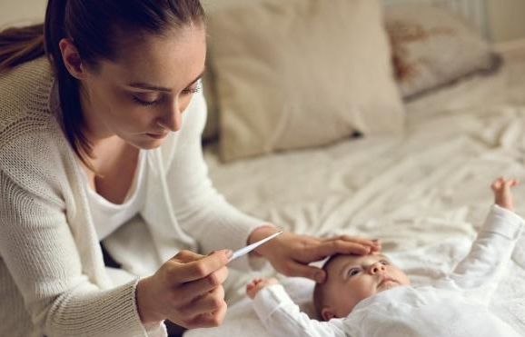 如果体温超过38.5°C,并伴有烦躁哭闹、拒奶等现象,则应及时就诊,请医生检查看是否合并其他感染。