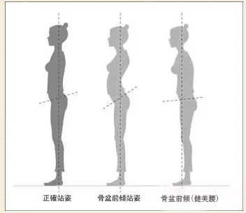 1、站立时:收腹,敛臀,既在收紧臀部的时候向内向下用力,让骨盆慢慢走向正确的位置。同时感受腰椎立起来,从前倾变向后立起。