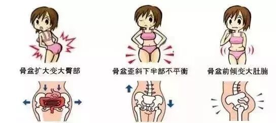 体型走样:正常情况下,女性的上半身是由骨盆支持,所以一旦出现松弛问题时,就必须用其它肌肉支持,比如胳膊以及臀部的肌肉,这就会导致体型走样。