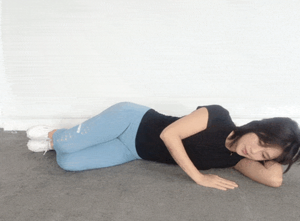 平躺,双腿分开,呈30-40度角,双腿重复做外旋和内旋动作,此时你会感受到胯部周围的肌肉在收紧的感觉。