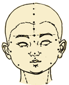 操作:用两拇指面自眉心起,交替向上直推至前发际,约推30~50次。