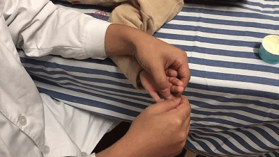 手势:五指并拢,手掌心呈凹陷状态,空掌拍背,拍的时候手掌心不会接触到孩子,主要的接触面是大小鱼际、小指尺侧、手指远端的螺纹面、拇指的桡侧。