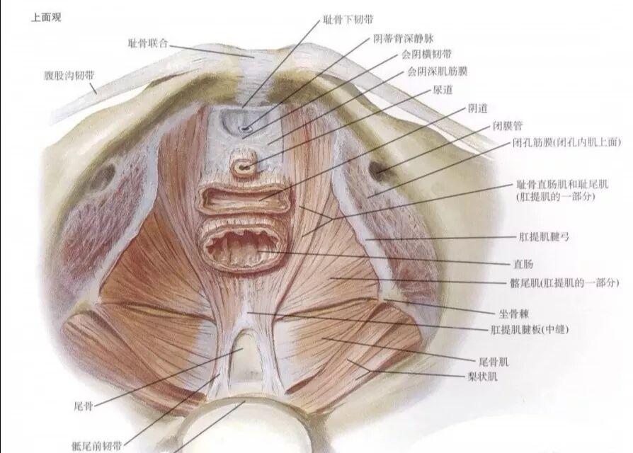盆底肌肉是维持盆底支持结构的重要组成,在盆底肌肉中,肛提肌起着最为主要的支持作用。肛提肌是一对宽厚的肌肉,两侧肌肉相互对称,向下向内聚集成漏斗状,每侧肛提肌由前向后有耻骨阴道肌、耻骨直肠肌、耻尾肌和髂尾肌四分组成。