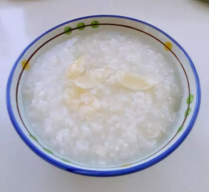 百合泡软后,与粳米一起加清水熬煮成粥。
