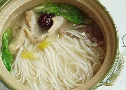 2、鸡肉炖烂,直接用筷子夹下细碎的肉,再盛出一碗汤;