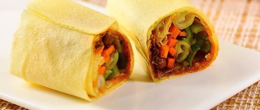 熟后倒入蛋液,待蛋液即将凝固时,将蛋饼卷起,煎成金黄色出锅切成段即可。