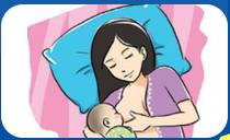 这个姿势适合夜间哺乳,身体侧卧,用枕头垫在头下。婴儿侧身和妈妈正面相对,腹部贴在一起。这种方法可以让妈妈在宝宝吃奶的时候得到休息。