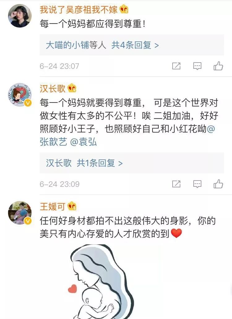 丈夫袁弘也在第一时间力挺妻子:别搭理,你是为母亲这个“角色”在付出,是最好的妈妈,十分温馨。
