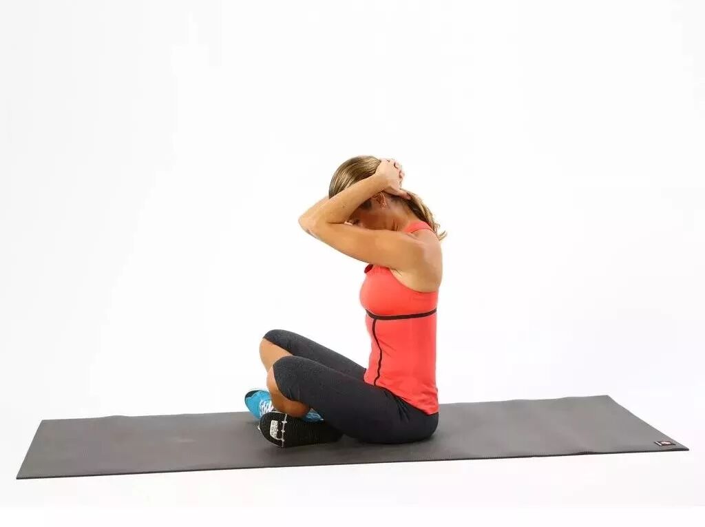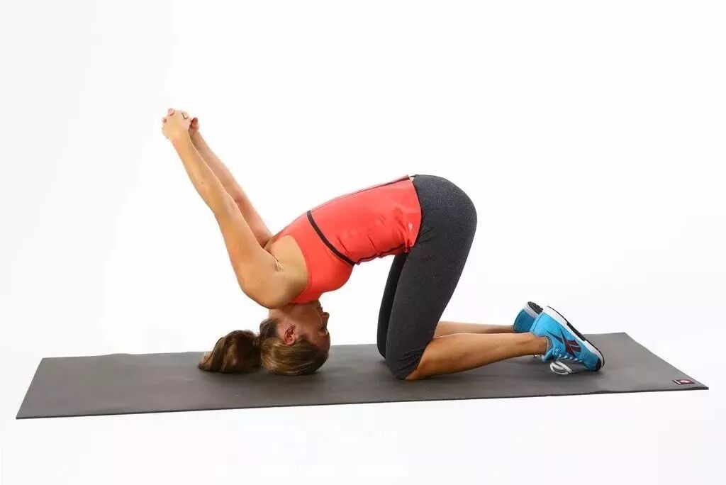 滚动头部向前,同时双手臂向后向上