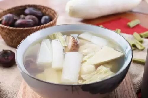 做法:白萝卜洗净切片(最好去皮),香菇每朵撕成两半,豌豆苗洗净,老姜拍破;把食材一起放入锅内煮开,转小火至萝卜熟透,加入食盐即可食用。
