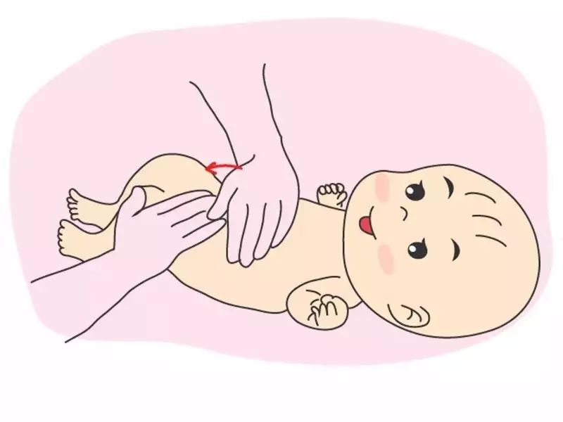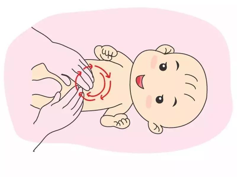 在宝宝的腹部上方,缓缓的以顺时针方向滑动,画出半圆。