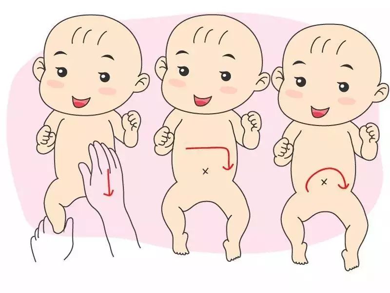 专家建议月嫂通过按摩手法缓解宝宝胀气,手法如下: