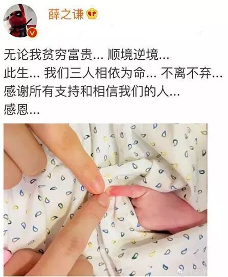 去年,薛之谦晒娃被众人指责,原因是晒娃图中宝宝的一根手指头是伸出来的,手指顶端还不正常泛白,众多网友怀疑宝宝的手指是被硬掰出来的。