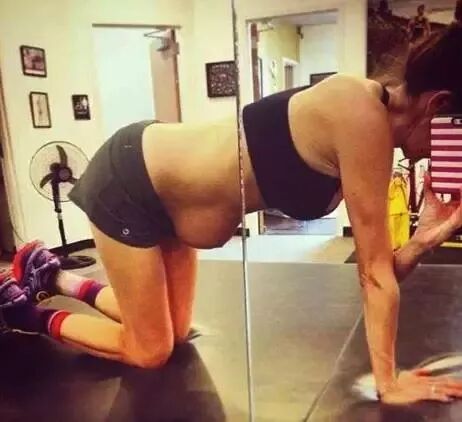 2、平板支撑:和仰卧起坐一样,由于腹直肌分离,腹部太弱,很多人做平板支撑根本撑不起来,从而做成错误的平板支撑,频繁进行错误动作之后,腹直肌分离的情况会越来越严重。