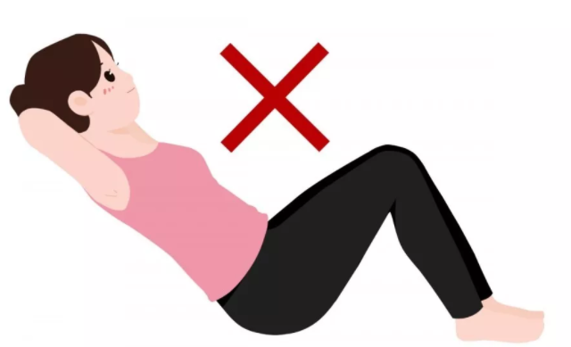 1、仰卧起坐:仰卧起坐虽然是一个很好的收腹的动作,但是绝对不适合产后腹直肌分离的妈妈的,由于产后腹直肌分离,两侧的腹直肌会从腹中线的位置向两侧分离,导致腹部肌肉力量变弱,腹部控制力差,频繁进行这个动作之后,腹直肌分离的情况可能会恶化。