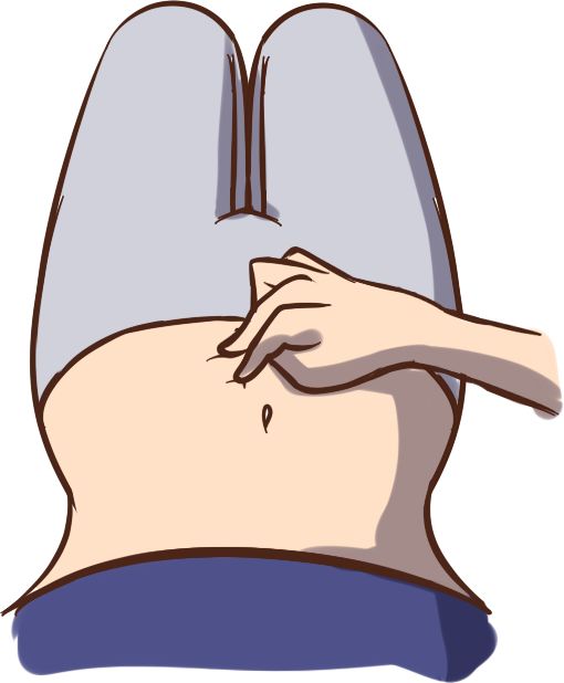 这里给大家介绍腹直肌分离的自查方法,在家就可以做。仰卧,两腿弯曲,露出腹部,左手在头后支撑,右手食指和中指垂直探入腹部,身体放松,然后将上身抬起,感觉到两侧腹肌向中间挤压手指,如果感觉不到挤压,那么就把手指向两边挪动,直到找到紧张的肌肉,测量两侧肌肉的距离。