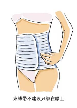 所以如果腹直肌分离特别严重的产后妈妈,在下地行走的时候,适当用一下束腹带,并且不要只绑在腰上,下面的骨盆也要连带着绑上一部分,起到固定的作用。而对于腹直肌分离比较轻的、或者是没有腹直肌分离的、想要瘦肚子的产妇,使用束腹带意义有限。