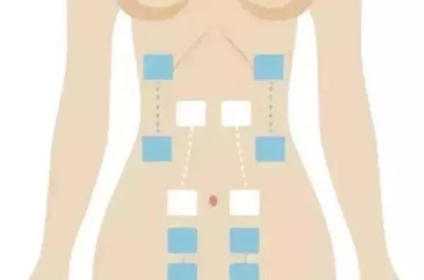3、神经肌肉电刺激:促使腹部肌肉被动收缩,对腹部肌群进行强化。