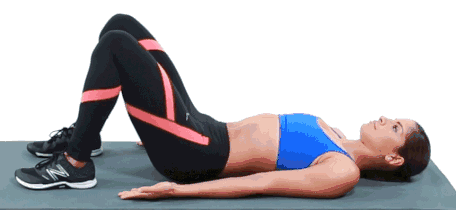 针对这种情况,应该着重训练腹横肌,臀桥是一个值得推荐的训练。仰卧,双腿弯曲于身前90°,双手平放在身体两侧将臀部抬至空中,使膝盖、上身、头部呈一条直线 保持几秒钟,慢慢回到平躺位置。