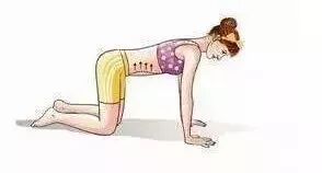 四点跪姿,髋关节和膝关节垂直,肩关节和腕关节垂直,脊椎在中立位(胸椎自然后屈,腰椎自然前屈)。吸气,小腹自然放松;呼气时,用力将小腹向内收回。每组重复10~15次,做2~3组。