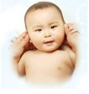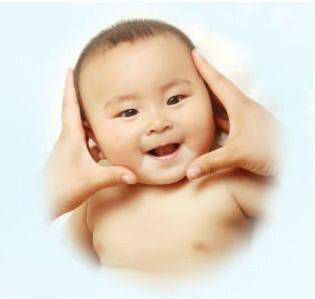 2、拇指从宝宝下巴处沿着脸的轮廓向外推压,至耳垂处停止。