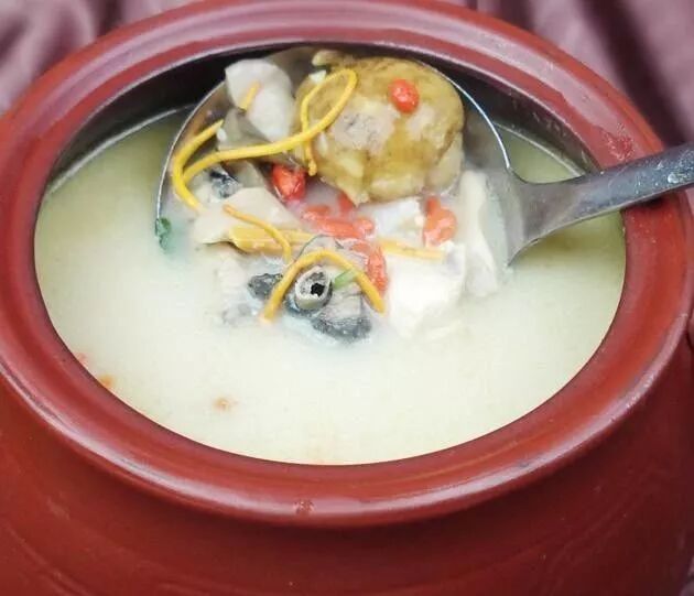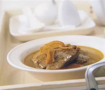材料:鱼120克,带皮老姜5片,黑麻油45ml,当归3片,水350ml。