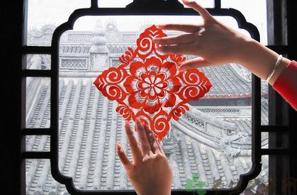 在中国民间人们还喜欢在窗户上贴上各种剪纸——窗花。窗花不仅烘托了喜庆的节日气氛,也集装饰性、欣赏性和实用性于一体。剪纸在我国是一种很普及的民间艺术,因它大多是贴在窗户上的,所以也被称其为“窗花”。