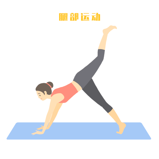 2、举腿运动:仰卧位,两臂伸直平放于体侧,左右腿轮流举高与身体成一直角,目的是加强腹直肌和大腿肌肉力量。