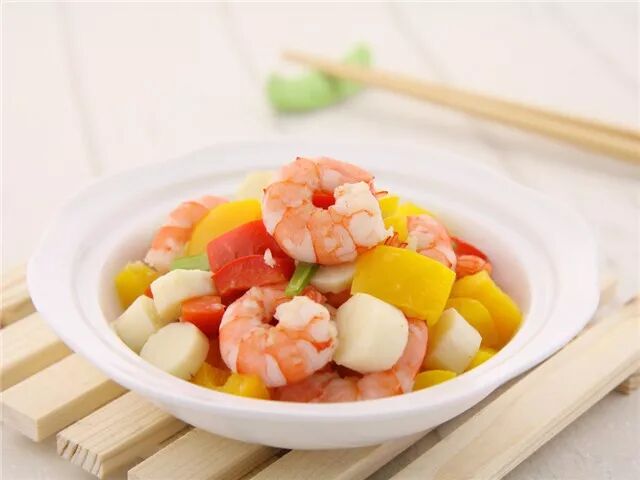 彩椒山药炒虾仁