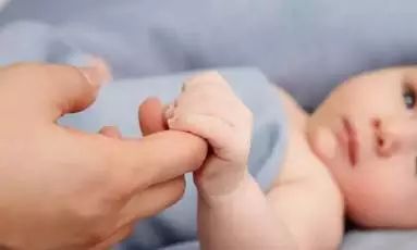 2、伸出手指,让宝宝自然地抓住月嫂的手指;