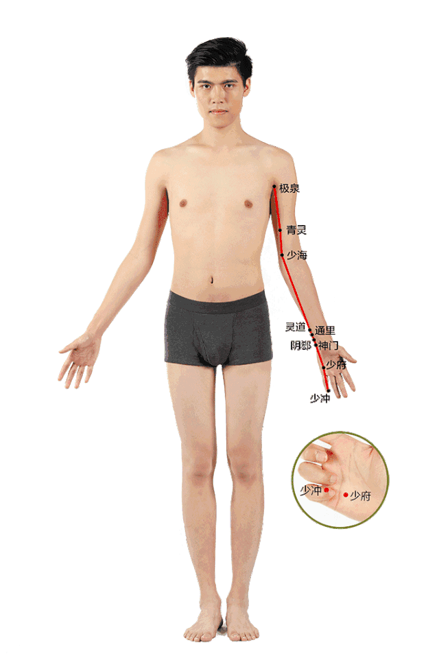 心经与心血管病直接相关,主要调理改善心、胸、神志方面的疾病,以及上肢内侧后缘疼痛、掌心热等。心经经气异常,会产生心痛、咽干、口渴、前臂厥冷、麻痛等症。