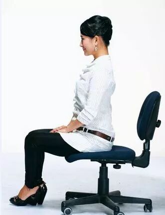 像软骨头似的斜坐在椅子上,会使压力集中在脊椎尾端,形成血液循环不良,血氧供应缺乏。最适合的坐姿是坐在椅子的2/3处,背脊挺直。
