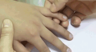 推拿位置:四横纹,即手掌面上食指、中指、无名指、小指第一指关节横纹处。