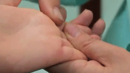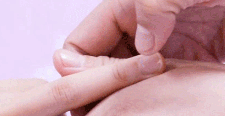 推拿位置:端正,在中指甲根两侧赤白肉处,桡侧称左端正,尺侧称右端正。(桡侧就是靠近大拇指的那一侧,尺侧就是靠近小指的那侧)