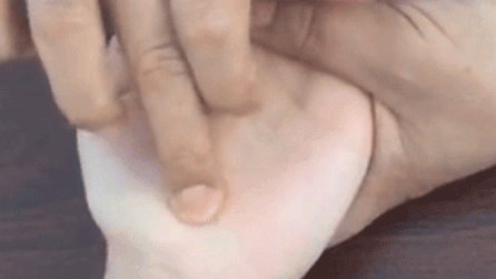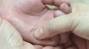 推拿位置:小天心,又称鱼际交,在大小鱼际交接处凹陷中。