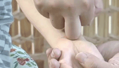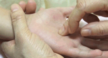 推拿位置:手阴阳,即掌侧腕横纹。又称大横纹。
