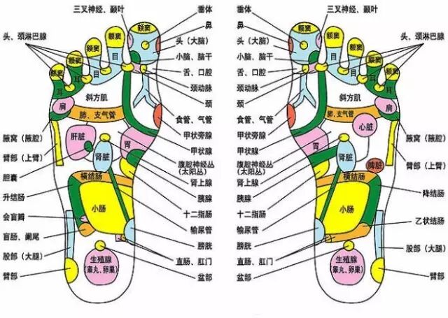 脚部还是各经络起止的汇聚处,脚背、脚底、脚侧、脚趾间汇集了很多穴位,还是相应脏腑器官的生理、病理信息的足部反射区,运用经络按摩的方法刺激这些穴位和反射区,可以调节人体各部分的机能,达到养生保健的效果。