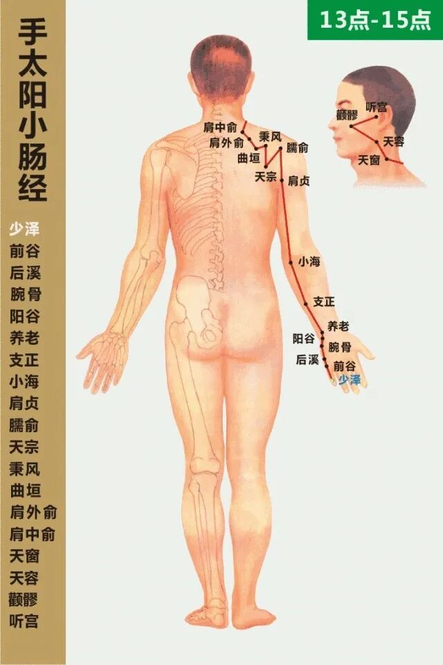 小肠经堵塞会影响人体精微物质的吸收,会让人抵抗力下降,体质变弱。如果小肠经通畅,身体就会慢慢变得强壮,还可调理慢性肠炎,疝气等问题。