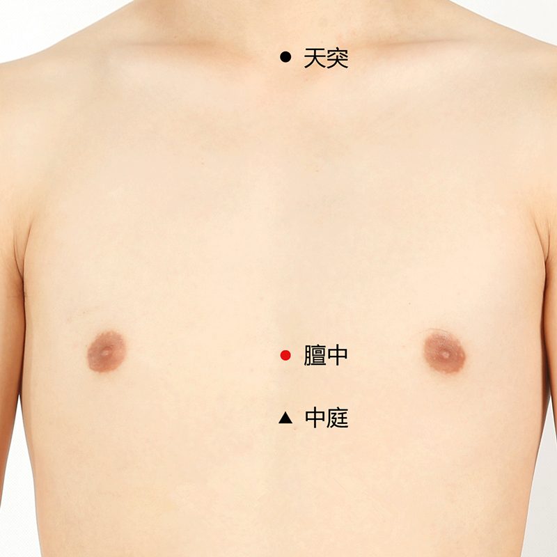 假如人郁闷得很严重的话,膻中穴就会被堵,这时,我们可以用大拇指往下捋膻中穴,让气能够降下去。