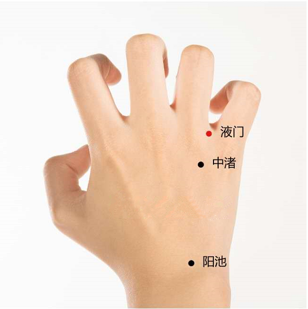 液门穴,属于手少阳三焦经穴位,位于手背无名指与小指缝间,因有通调水道、降浊升清、清火散热的特殊功能,常被称为人体随身携带的“牛黄解毒片”。