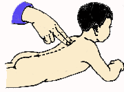 以掌横擦骶尾部,直推脊柱5~10次,以透热为度。