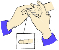 尺桡沟从远端至近端用布擦.用温水或凉水(也就是把手抻直,手掌向上从手腕到手肘中间的沟)